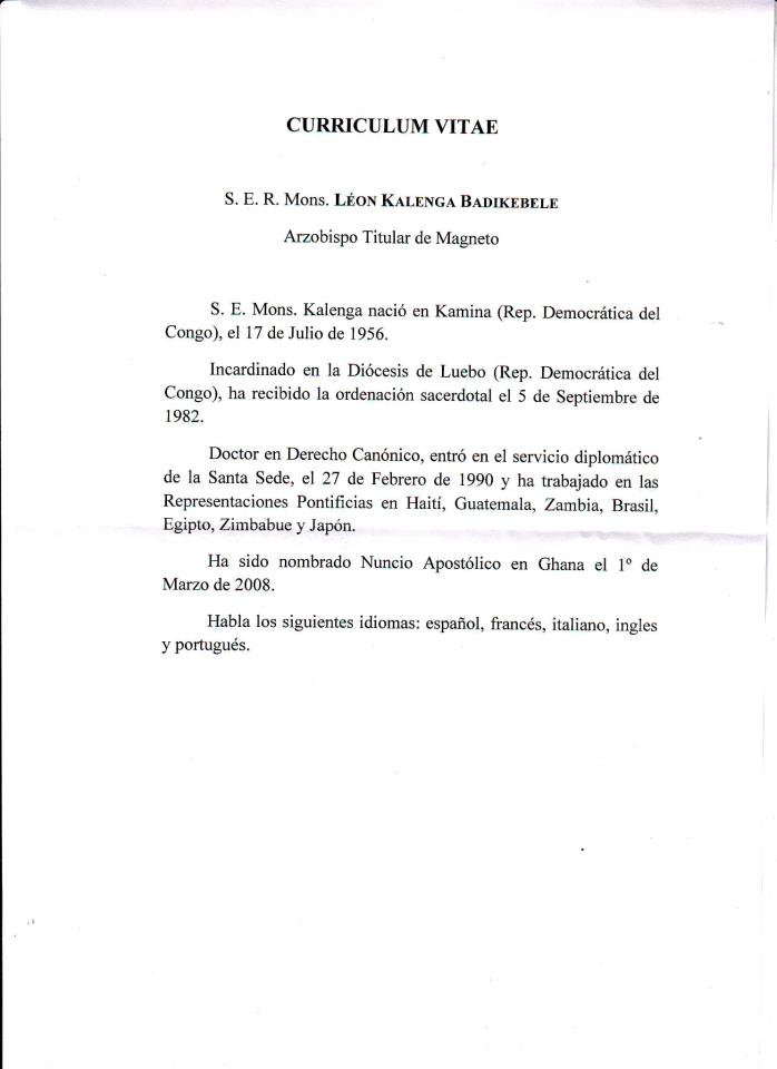 IMAGEN DE CURRICULUM DEL SEÑOR NUNCIO APOSTÓLICO DEL EL SALVADOR